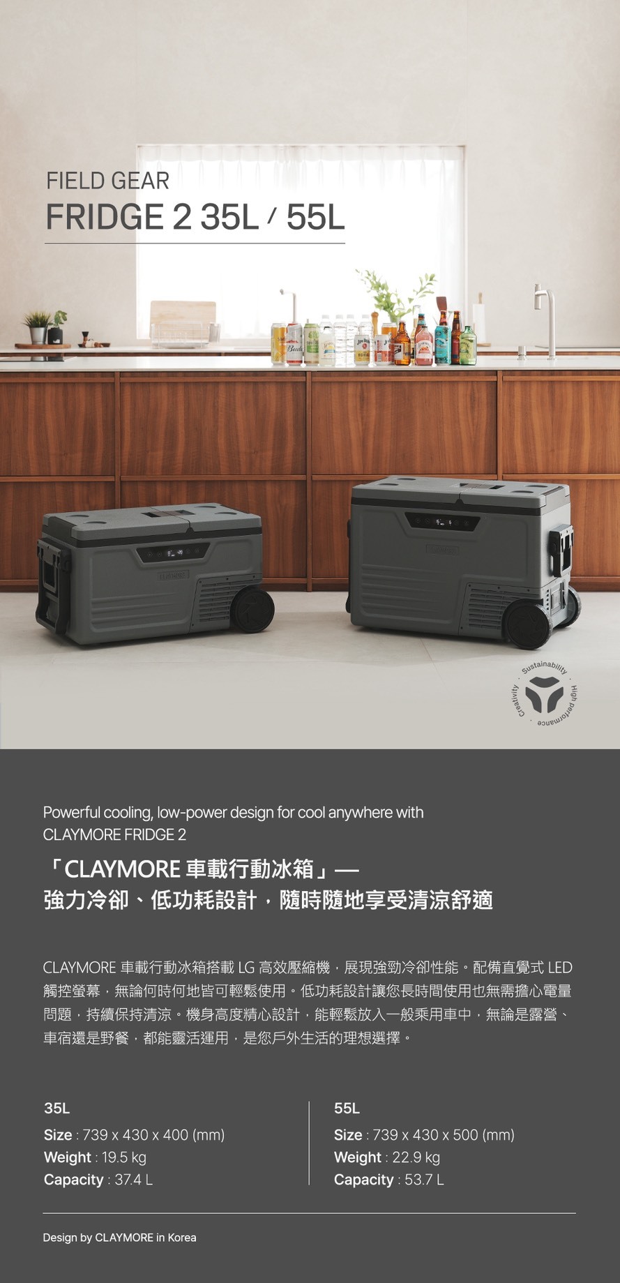 CLAYMORE 55L 採用LG高效壓縮機,支援 -20°C~20°C 溫控,冷藏+冷凍一次搞定;雙槽設計可同時冰飲料、凍肉,露營直接升級行動廚房。