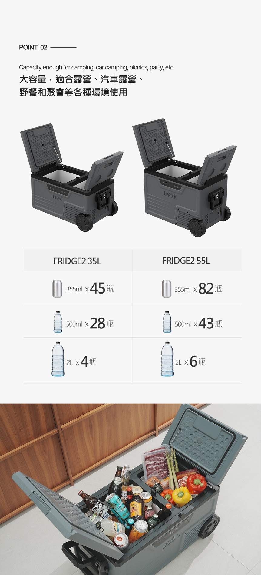 搭配低功耗設計+靜音運作,長時間使用也不怕耗電或影響睡眠;側開雙門+LED觸控面板,操作直覺、使用更便利,是車宿與長天數露營的進階裝備。