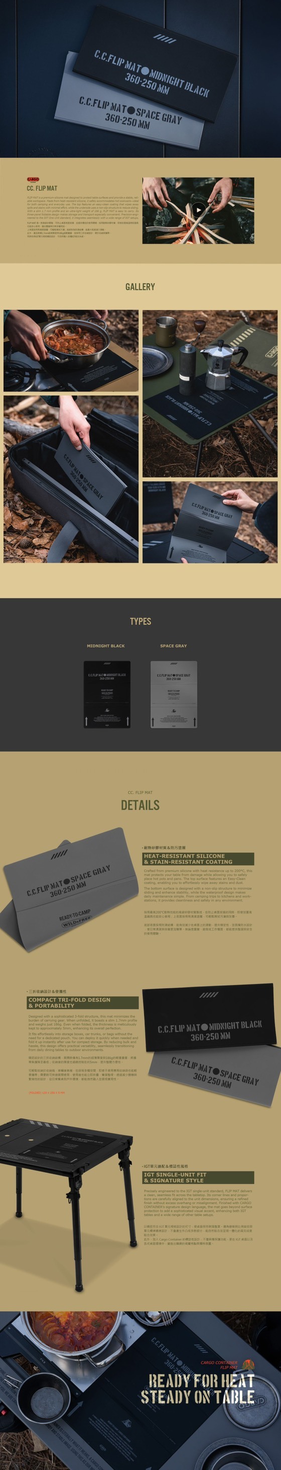 可折疊設計方便收納,完美對應IGT 1單位尺寸,露營煮食更安全、桌面更乾淨有型