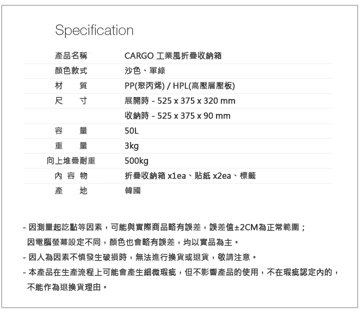 CARGO 工業風折疊收納箱(軍綠)