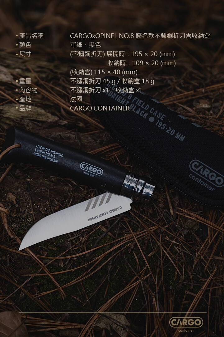 跨界巔峰之作:CARGO x OPINEL NO.8 聯名款不銹鋼刀 (含收納盒)