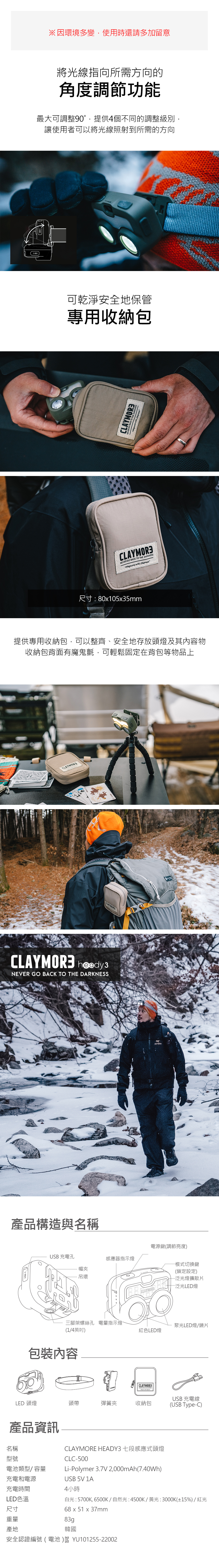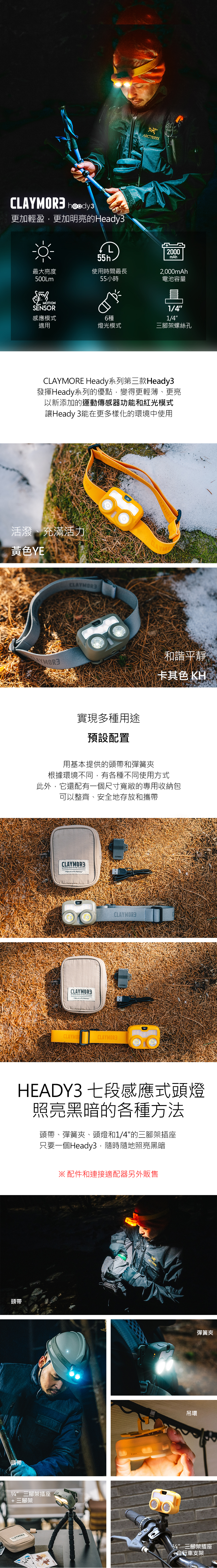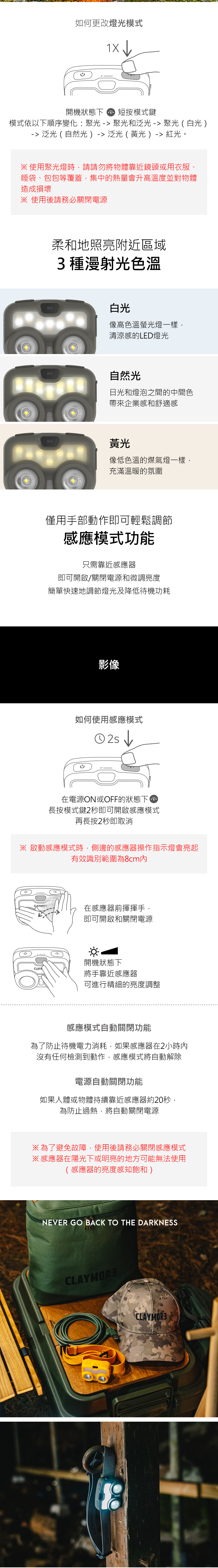 【CLAYMORE】 HEADY3 七段感應式頭燈【現貨2色展示】