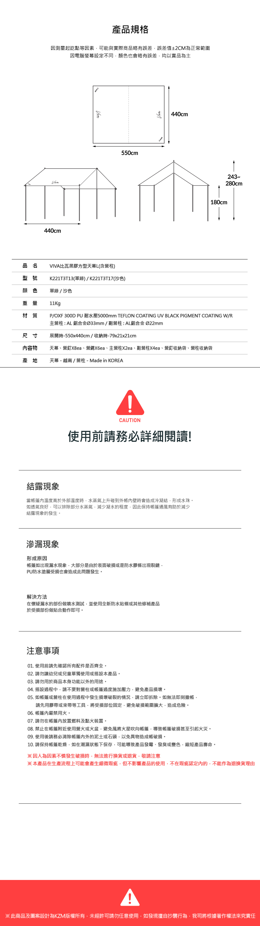 KAZMI KZM VIVA 比瓦黑膠方型天幕L