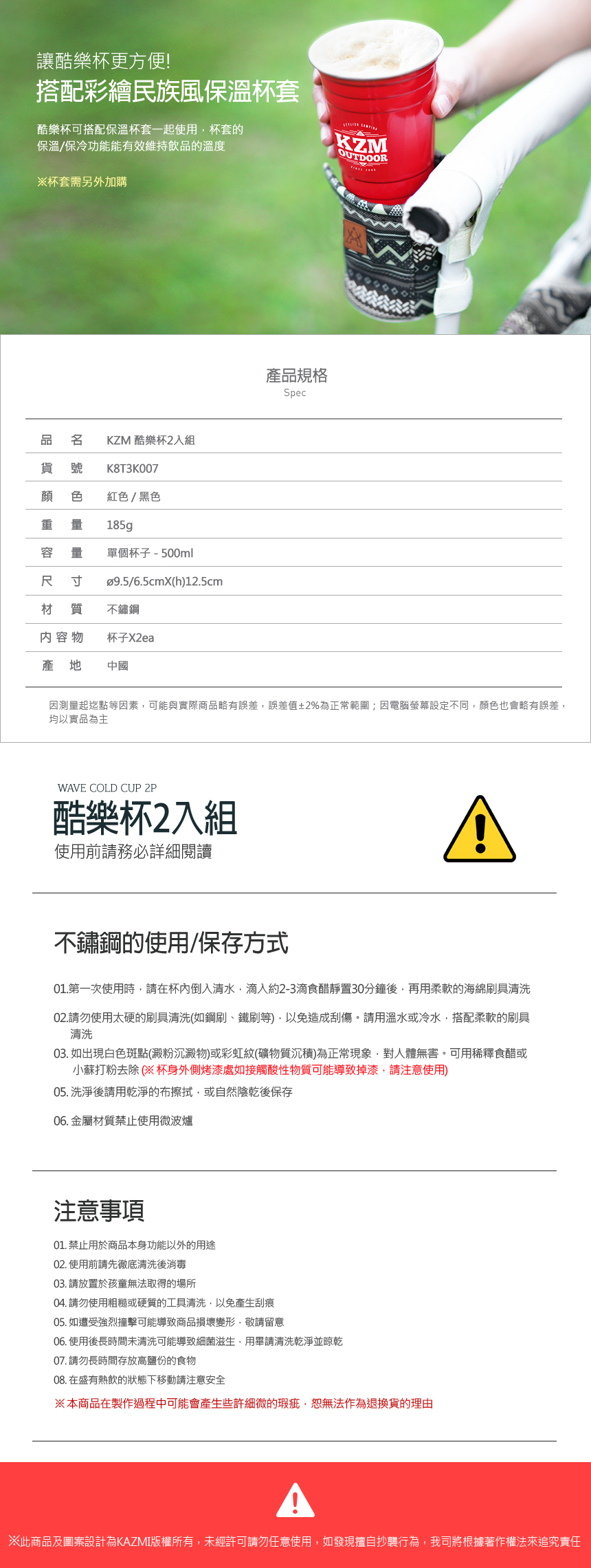 KZM 酷樂杯2入組-500mL不鏽鋼X烤漆X美學【雙11超殺優惠】