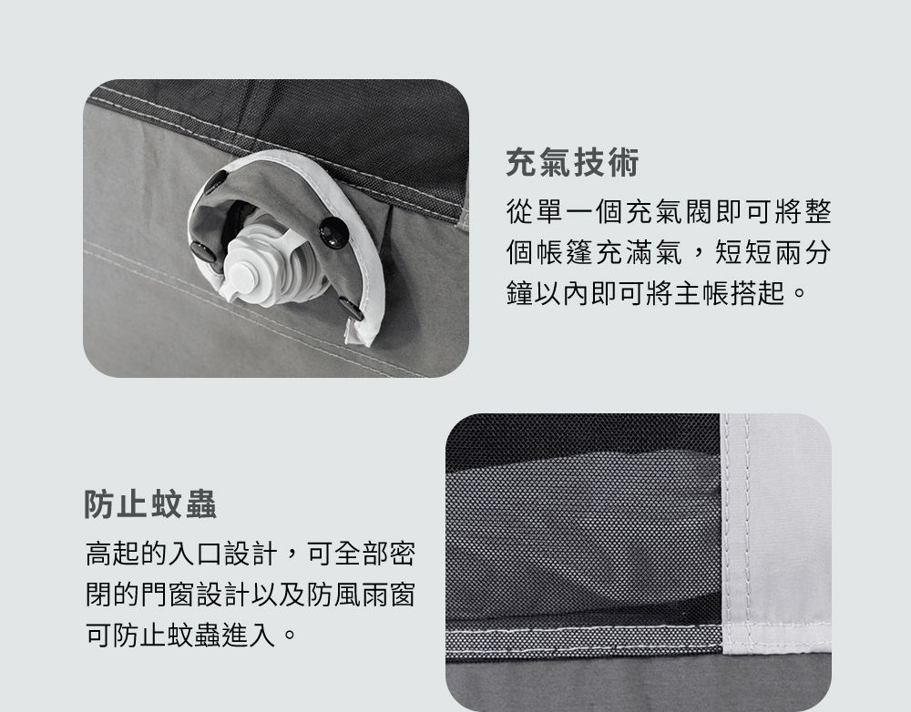 **帶有獨立外部閥門的整合充氣床墊提供內置舒適感