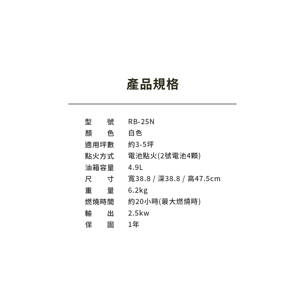 🔵 點火方式:電池點火 (2號電池4顆)