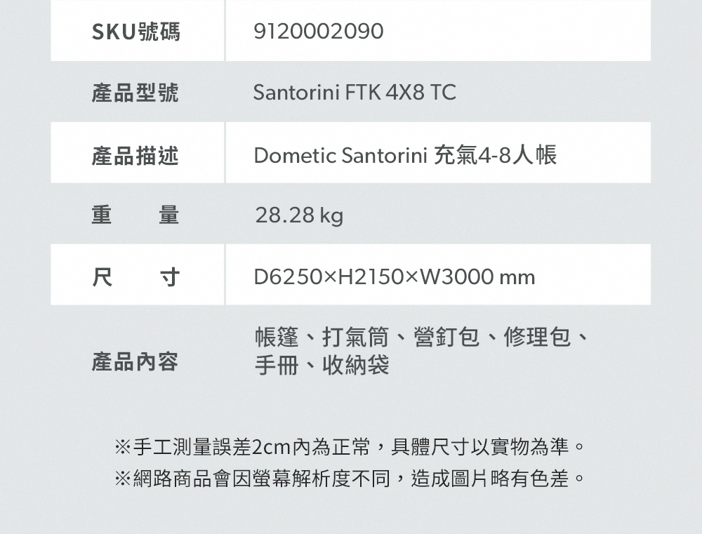 主帳、打氣筒*1、營釘包、收納外袋、修補包、目錄一份