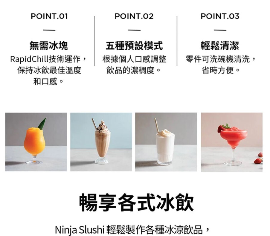 | 預設模式 | 冰沙、冰凍飲料(依型號略有不同) |